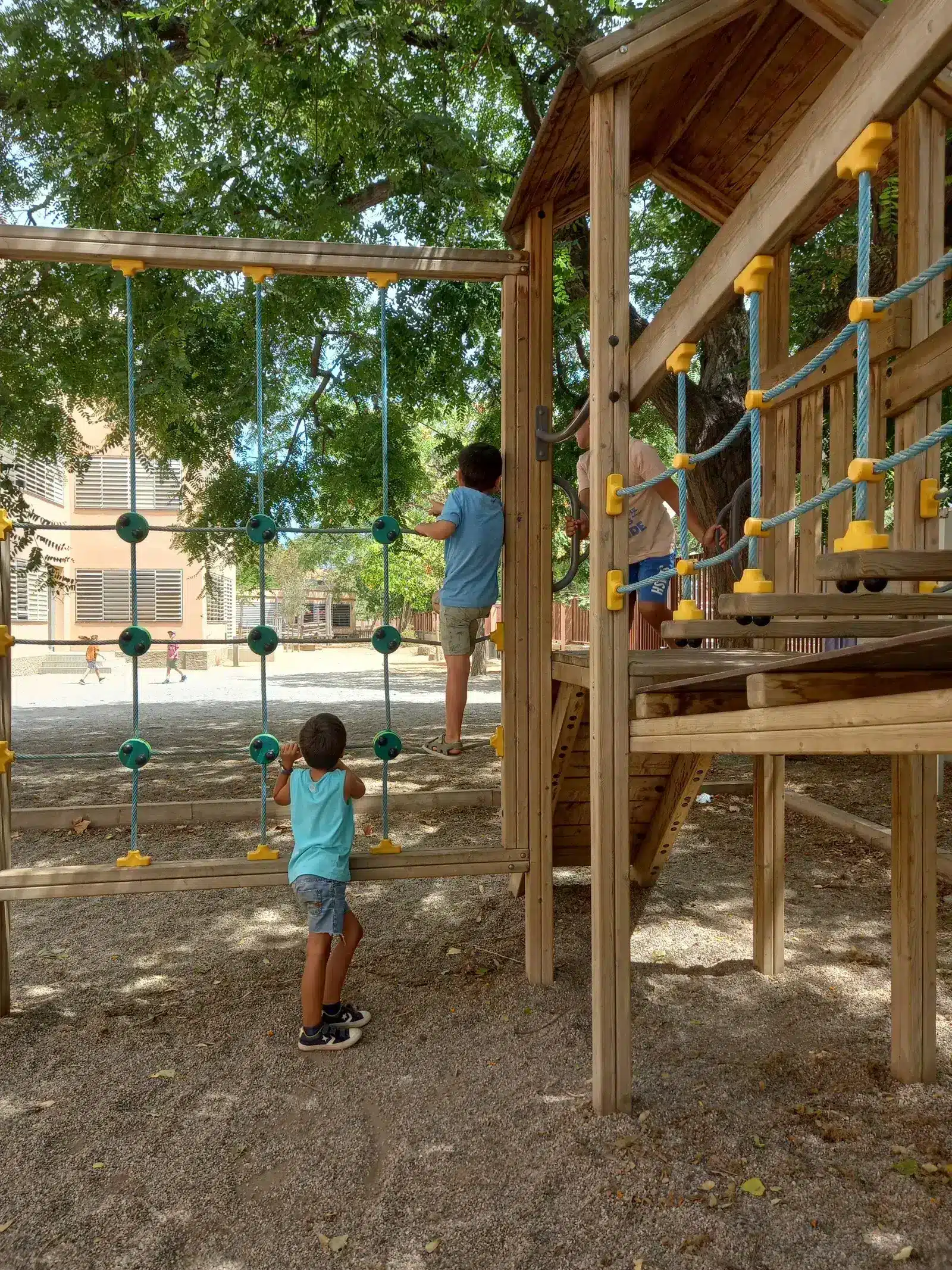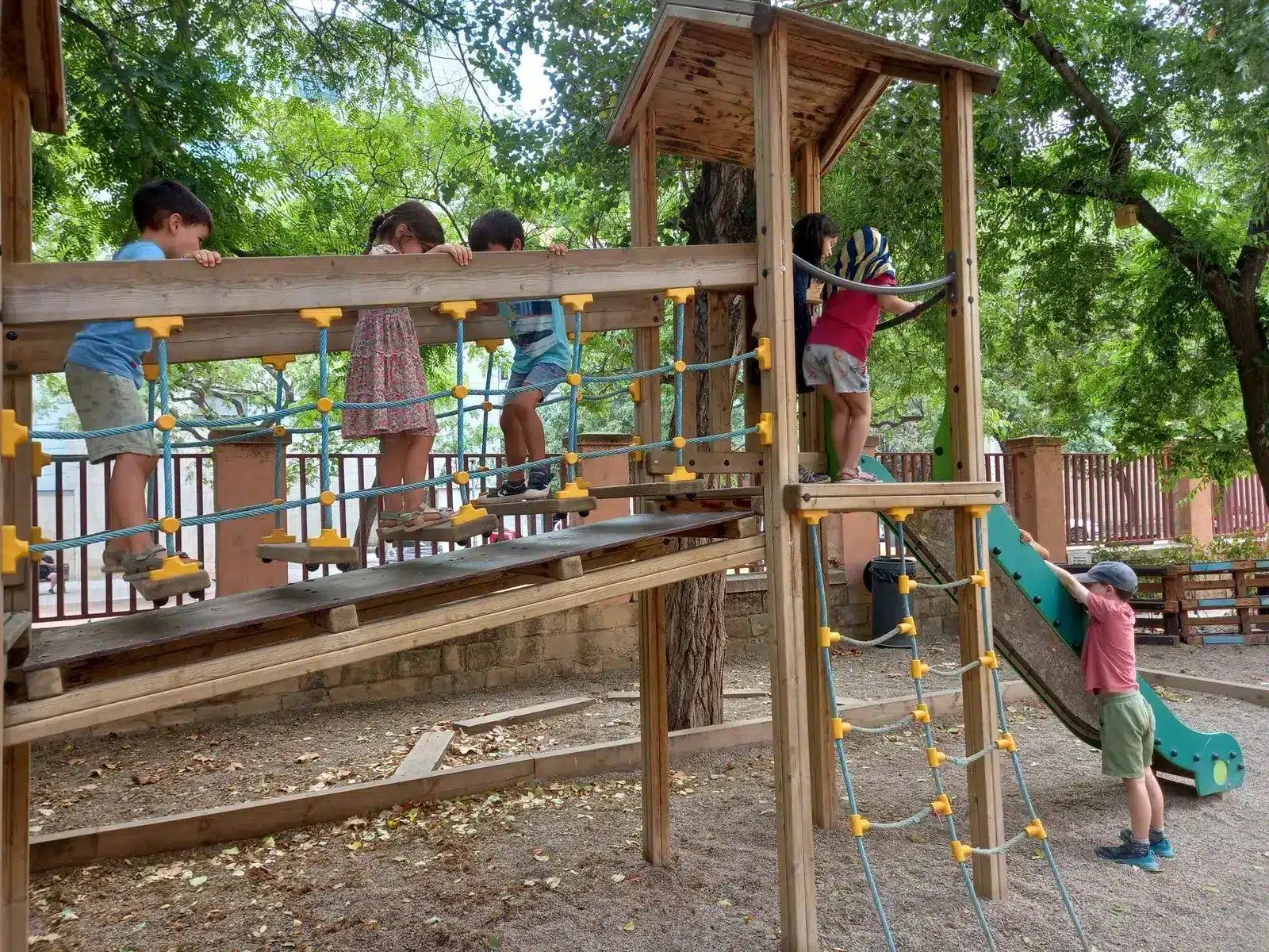 Disposem de sortida directe a un interior d’illa, els Jardins de la Mercè Pantada, un espai a l’aire lliure amb molts arbres i molta ombra. Aquest any farem moltes activitats a l’exterior.