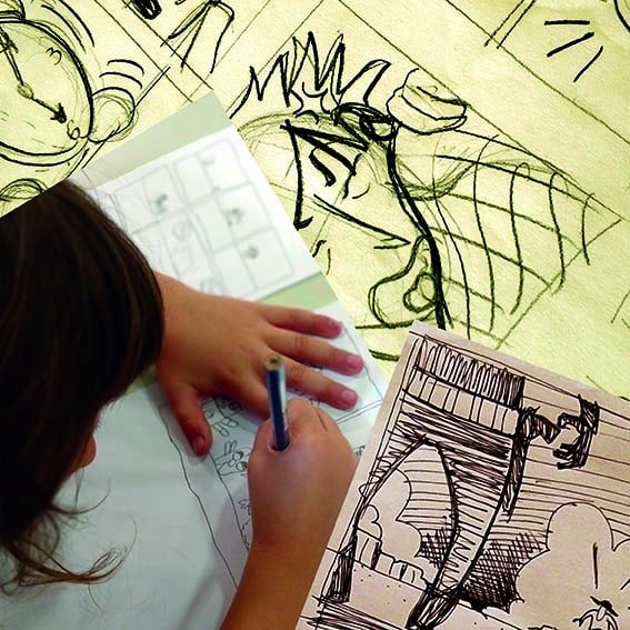 El cómic es una disciplina que abarca tanto el desarrollo de habilidades plásticas como narrativas. Por un lado trabajaremos técnicas de ilustración, utilizaremos diferentes herramientas, materiales, papeles. Potenciaremos la imaginación y la expresión de las ideas creando personajes, ambientes, situaciones…