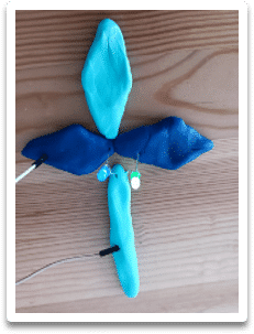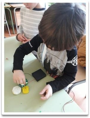 Una introducció als circuits elèctrics fent servir plastilina conductiva, bateries i leds. Es pot treballar juntament amb el concepte d’energia solar o amb l’energia eòlica (fent un Sol o un molí de plastilina i explicant que el Sol o l’aire són font d’energia).